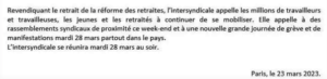 À L’appel de l’intersyndicale une 10ème journée de mobilisations contre la réforme des retraites se déroulera mardi 28 mars.