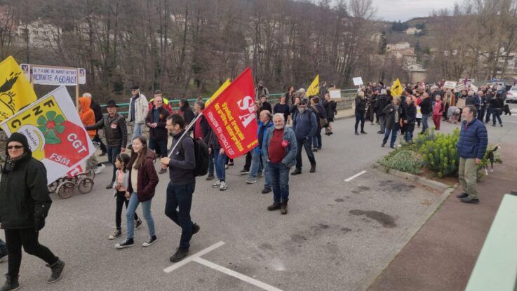 À Lamastre: tractage, échanges, banderoles sur le marché toute la matinée.