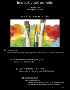 Rendez-vous au Parc – exposition de peinture à Lamastre 16 juillet 2019 RAD Loisirs 0 Proposé par l’association « Poil au pinceau » Vous aimerez peut-être aussi :Ils ont donné leur nom à une rue de Lamastre - Conrad KILIAN: personnage de légendeCompte rendu de la réunion du conseil municipal du 8 avril 2019 - LamastreConcerts du mois d'août au temple de DésaignesCompte rendu du conseil municipal du 11 décembre 2017 - LamastreLamastre - "Unité" pour l'hommage à Samuel PATY expositionLamastreparc Seignobospeinture