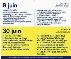 Réouvertures au 19 mai – l’agenda du déconfinement 18 mai 2021 RAD Infos Rassemblement autour du Doux 0 Une réouverture en 4 étapes RAD Vous aimerez peut-être aussi :Ardèche : port du masque obligatoire sur les marchés, fêtes de village...Réouverture du centre de vaccination Covid à LamastreLe maire de Lamastre devant le tribunal correctionnelSaint Félicien - fête de la Chèvre et du Caillé Doux le 6 août"Déconfiner, quel beau verbe" ! - compte rendu d'une PROCHAINE réunioncommercescouvre-feucoviddéconfinementécolesrestaurantsterrasses