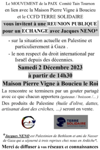 Réunion publique Palestine à la maison Pierre Vigne à Boucieu le Roi le 2 décembre