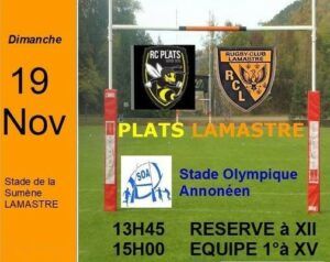 Ce dimanche 12 novembre, en tête pendant la majeure partie du match, les Platous/ Lamastrois se sont faits dépasser dans le dernier quart d’heure par l’Ovalie Berg Coiron Helvie mais empochent leur premier bonus défensif à l’extérieur (17-15).