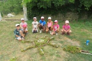 Après le pique-nique, les artistes en herbe se sont exercés au Land Art, avec l’aide de Héléna, directrice, des animateurs Ludivine, Emilie, Mallaury et Joris. Coeur, arbres, soleil, autant d’oeuvres éphémères qui ont été créés sur la place de la mairie.
