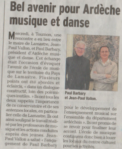 Ce 7 avril, le Dauphiné Libéré titrait, en page Lamastre, « Bel avenir pour Ardèche musique et Danse ».
