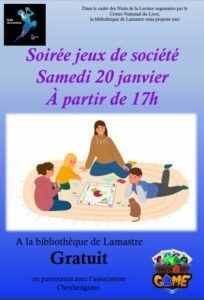 La bibliothèque, en partenariat avec Cheylardgame, propose pour les nuits de la lecture 2024 une soirée jeux de société.