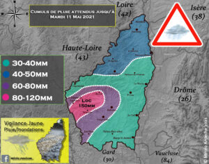 Météo France a placé ce matin 10 mai 2021 l’Ardèche en vigilance orange pluies- inondations.