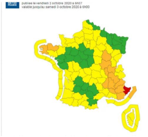 Météo France vient de classer la Drôme et l’Ardèche en vigilance météo orange pour la journée du 2 octobre 2020. Le phénomène devrait démarrer vers 10h ce matin pour se terminer vers 20h, avec un pic à la mi-journée.
