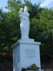 La » Trisande » et la statue de la vierge qui domine le village.