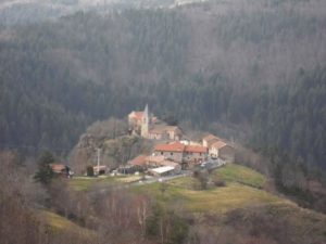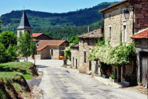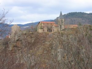 L’éperon rocheux sur lequel le village est bâti offre un beau panorama sur les rives du Doux.