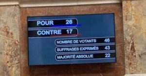 La loi a été adoptée et par seulement 26 d’entre vous, vous avez été 17 à voter contre et 3 se sont abstenus.
