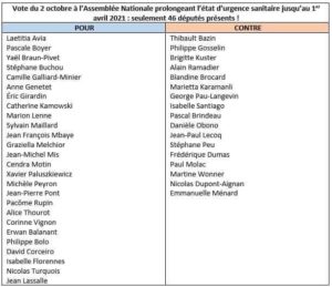 Dans la nuit du 1er au 2 octobre, vous avez voté la prolongation de l’état d’urgence sanitaire qui continue de donner au gouvernement le droit de prendre les mesures restrictives qu’il souhaite face à la crise, sans devoir ensuite vous consulter ni rendre de comptes.